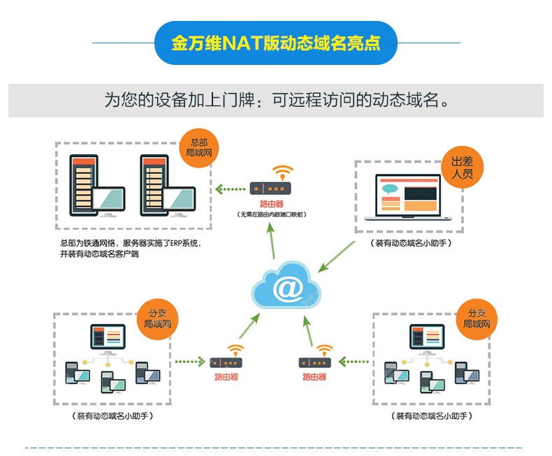 NAT版、NAT移动版、云解析版这个三个版本有其共同的特点即:不需要公网IP,也无需路由器端口映射,也就是说客户的只要能够上网就能够实现外网的连接,实施更简单,下面单独介绍下这三个版本的使用场景。