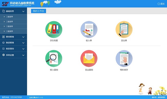 学校收费系统是以学生收费为主线,结合学校教具、物资采购、领用等需求为一体的管理软件。 系统适用于:幼儿园、小学、中学、职业技术学院等;