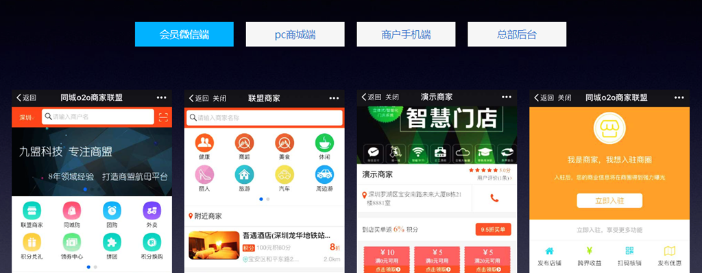 运营场景: 都市生活圈、社区O2O、商城生活圈、商盟O2O、城镇生活圈、商圈O2O、大学城生活等